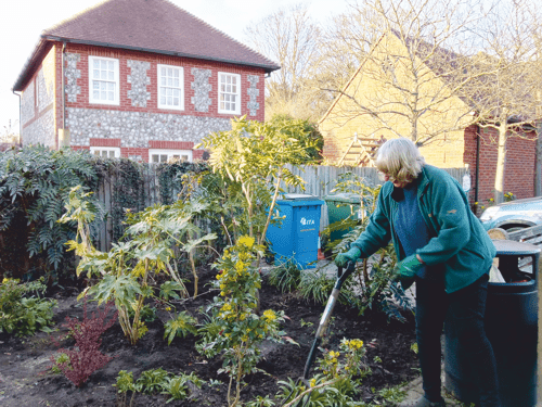 Later this year the Bookham Youth Centre will be closing but fortunately the BRA Tree Warden team have been able to rescue some of the shrubs and plants and relocated them to the area outside of the library which had become almost devoid of plants as people walked through.