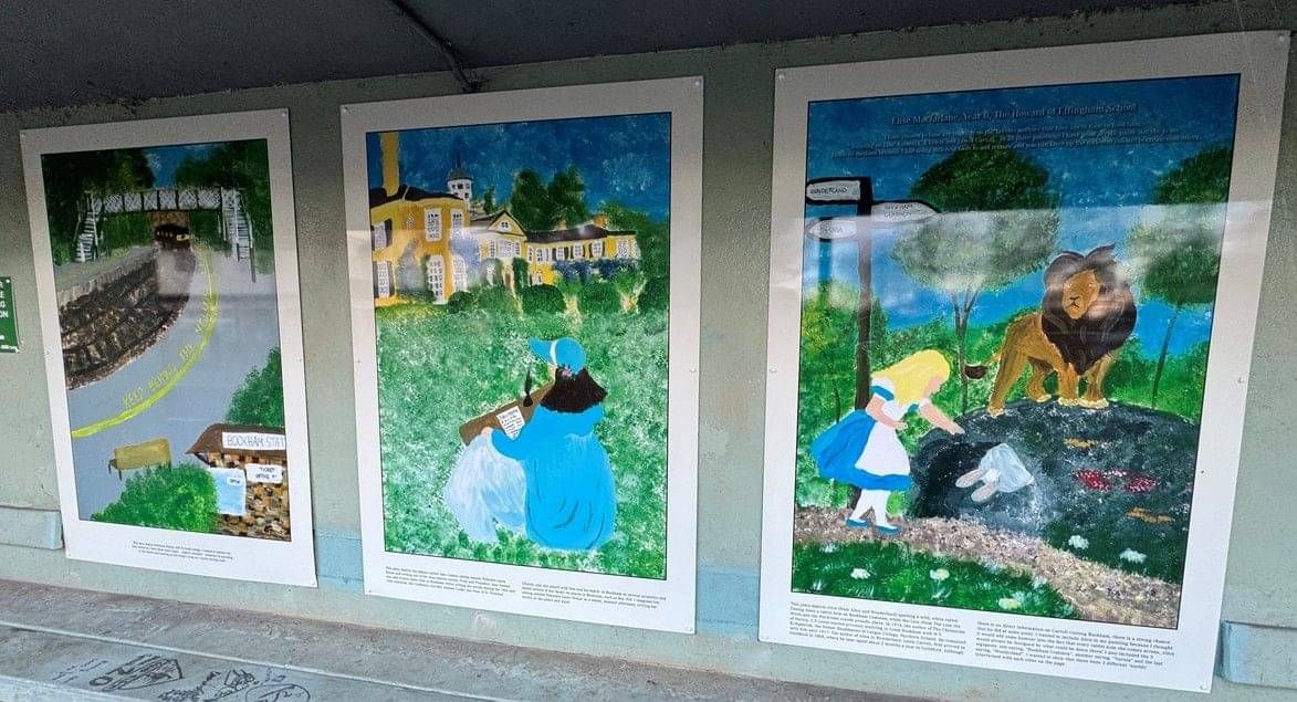 The artist is Elise Macfarlane, a Year 8 student at The Howard of Effingham School, who chose to centre her triptych on three famous authors with Bookham connections: Jane Austen, C.S Lewis and Lewis Carroll.