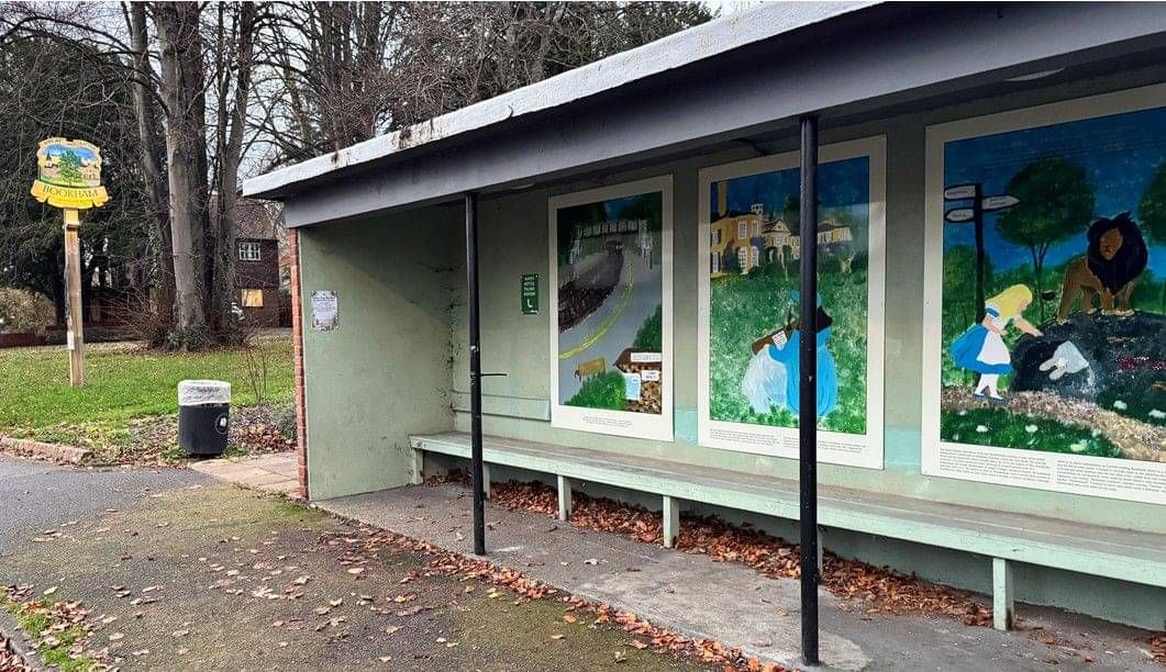 Anyone who has hidden from the rain at the bus-shelter on the A246 by Lower Shott will know it is fairly drab place, but that has now changed! As part of the renovation of the public facilities block the BRA and Mole Valley Council’s Property Team have installing some colourful public art.