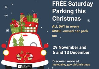 The Christmas Season is here again and MVDC want everyone to enjoy the festive magic of Mole Valley across our towns and villages!On 29 November and the 6 and 13 December, visitors to Mole Valley’s towns and villages can enjoy free parking all day in MVDC-owned carpar...