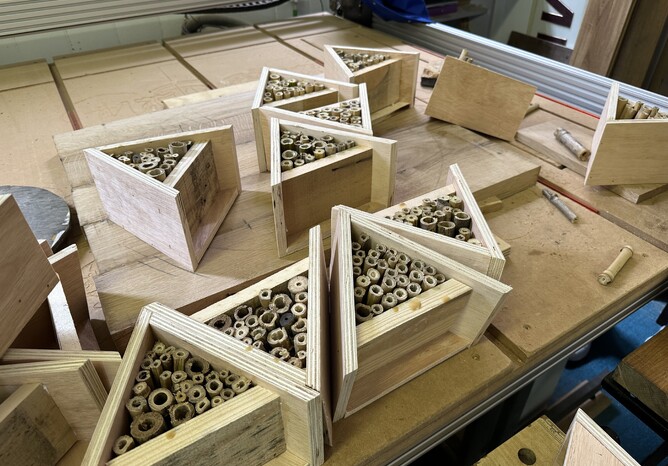 A recent weekend event saw a team from the Dorking Men’s Shed and guests from the Ukrainian community construct 40 Bee Hotels which will later be painted at a family fun workshop and then installed at several key locations including natural areas and gardens.